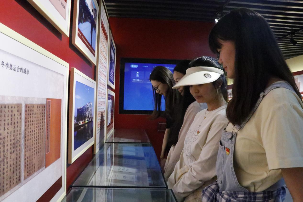 在“百年恰是风华正茂”展厅,300余件档案、100余张历史照片、20余组音视频资料,分为信仰的力量、理论的力量等8个篇章,系统呈现了中国共产党带领人民砥砺奋进的百年征程。师生们沉浸其中,深刻体悟党不断取得胜利的力量所在。